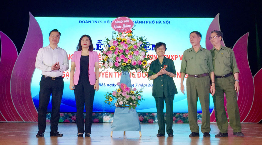 Tuổi trẻ Thủ đô tặng hoa chúc mừng Hội Cựu thanh niên xung phong thành phố Hà Nội.