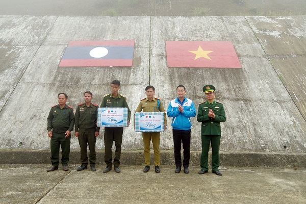 Tặng quà lực lượng Bảo vệ Biên giới nước bạn Lào tại cột mốc 666