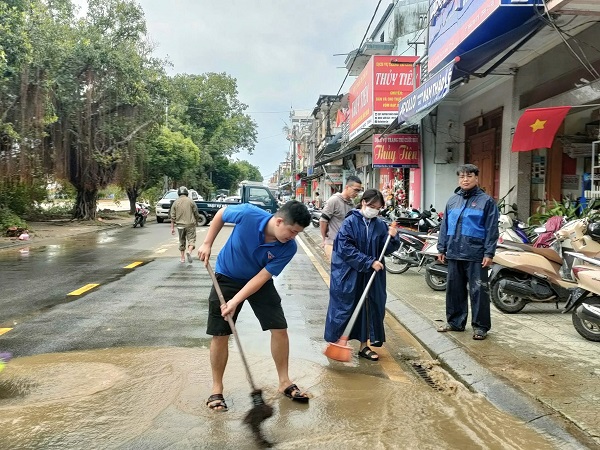 Bên cạnh đó, để giúp người dân khắc phục hậu quả do mưa lũ, các cấp bộ Đoàn trên địa bàn tỉnh đã nhanh chóng thành lập các đội hình tình nguyện phối hợp với chính quyền địa phương và các lực lượng chức năng kịp thời triển khai các phần việc thiết thực, hỗ trợ người dân vượt qua khó khăn: Ra quân giúp dân khắc phục cây ngã đổ tại các tuyến đường, hỗ trợ thông thoáng các tuyến giao thông quan trọng và chung tay dọn vệ sinh tại các trường học…
