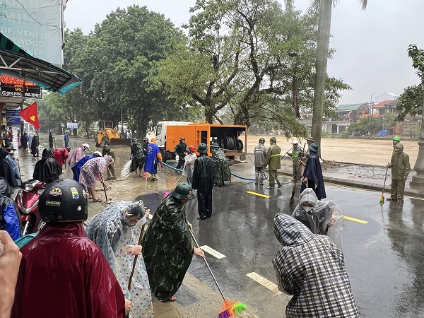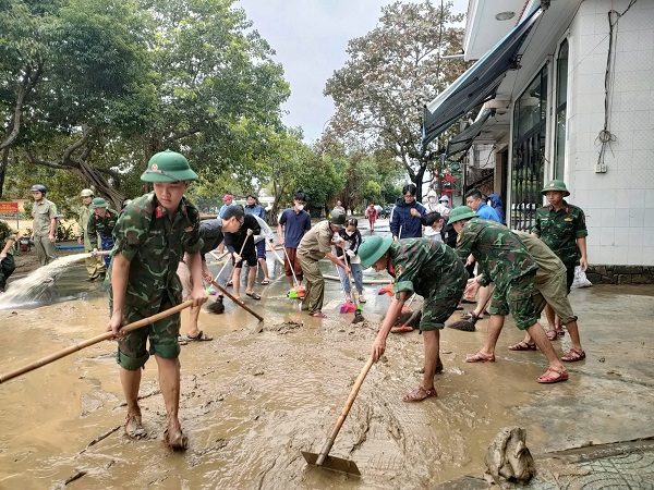 Các lực lượng chức năng và người dân cùng tham gia hỗ trợ dọn dẹp sau lũ lụt