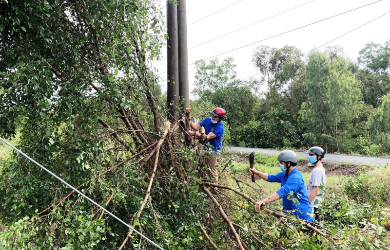 Đoàn viên, thanh niên chặt tỉa cành cây che khuất tầm nhìn trên tuyến đường thanh niên “xanh - sạch - đẹp - an toàn” tại huyện Tân Phước