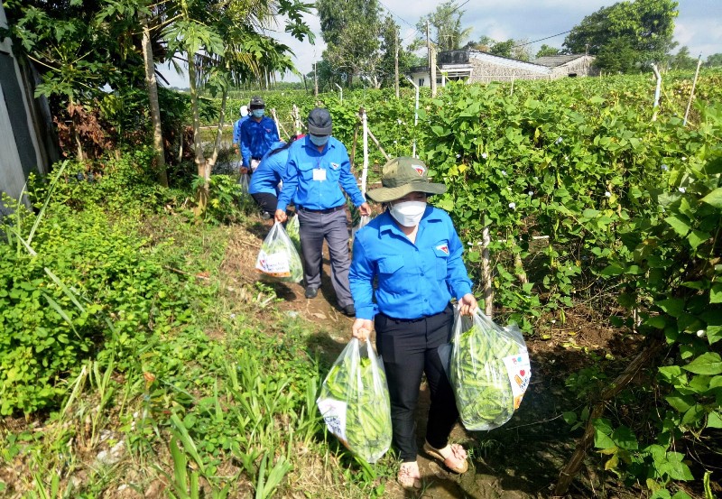 Đội hình “Áo xanh ra đồng” của huyện Gò Công Đông, cung cấp rau xanh cho chương trình “Triệu túi an sinh”