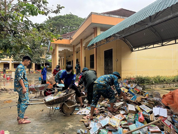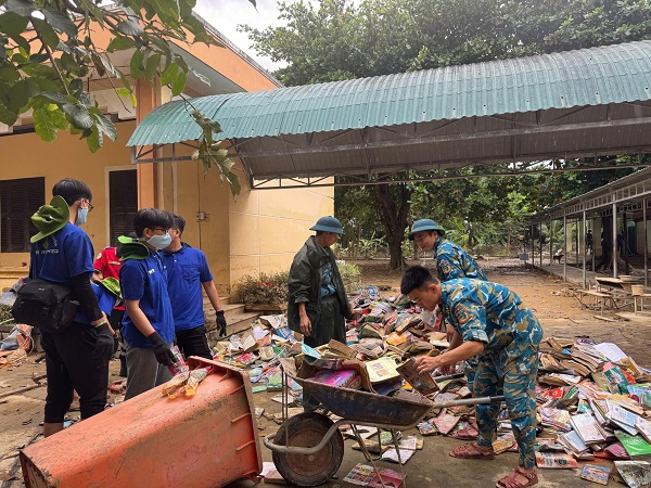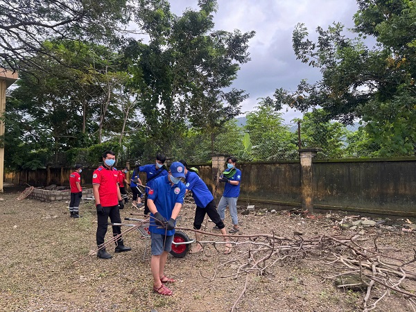 Với tinh thần xung kích, nhiệt huyết và trách nhiệm, các bạn trẻ nhanh chóng tổ chức dọn dẹp vệ sinh môi trường, thu gom rác thải, đồng thời mang theo nhiều nhu yếu phẩm cần thiết để kịp thời chia sẻ khó khăn với người dân tại các khu vực bị ảnh hưởng.