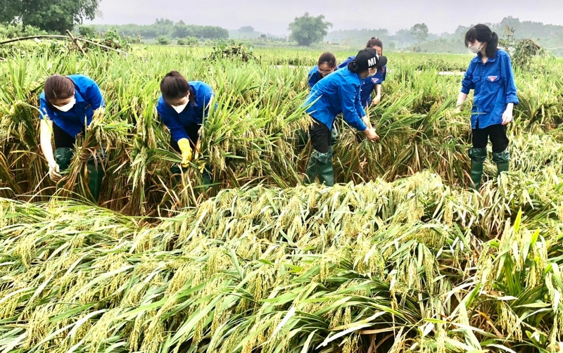 Theo báo cáo của Sở Nông nghiệp và Phát triển nông thôn Tuyên Quang, đợt mưa trên địa bàn tỉnh có 2 người thiệt mạng, 4 người thương nặng do sạt lở đất tại huyện Hàm Yên, Chiêm Hóa và Yên Sơn cùng nhiều địa phương bị ảnh hưởng do mưa, lũ. Trước tình hình đó, lực lượng ĐVTN đã phối hợp tham gia gặt lúa giúp nhân dân, tham gia nạo vét kênh mương, khơi thông dòng chảy, vận chuyển đất, đá, cây đổ tại các tuyến đường nhằm hỗ trợ giao thông đi lại thuận tiện; hỗ trợ dọn dẹp giúp các hộ bị tốc mái, nghiêng nhà, đồng thời tổ chức thăm hỏi, động viên các gia đình bị thiệt hại do mưa lũ…