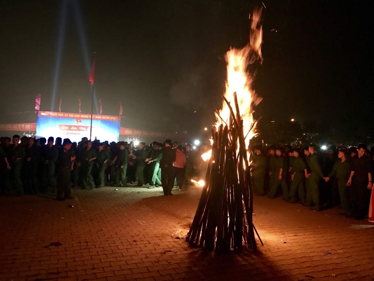 Trong đêm văn nghệ, các chiến sỹ đã được tham gia giao lưu các tiết mục văn nghệ với các bạn ĐVTN và cùng tham gia các hoạt động trong lễ đốt lửa truyền thống.