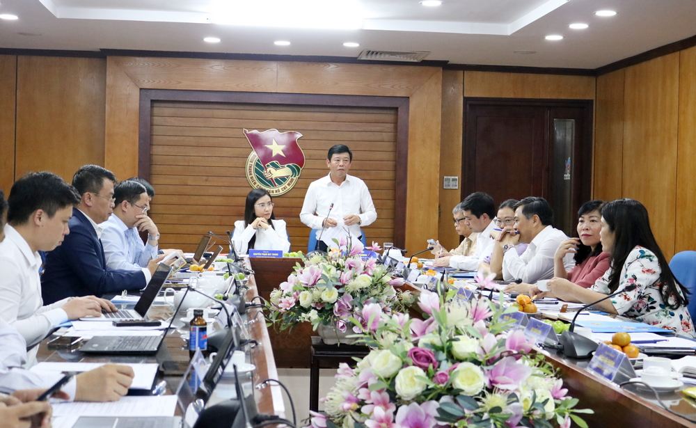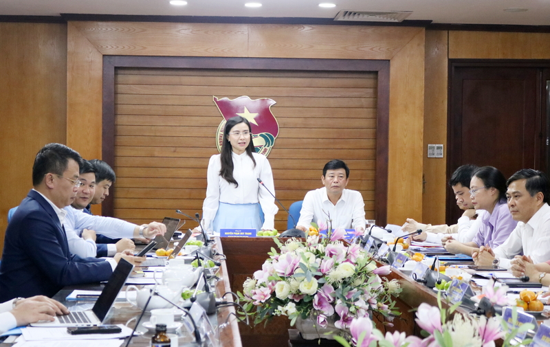 Đồng chí Nguyễn Phạm Duy Trang - Bí thư T.Ư Đoàn, Chủ tịch Hội đồng Đội T.Ư phát biểu tại buổi làm việc