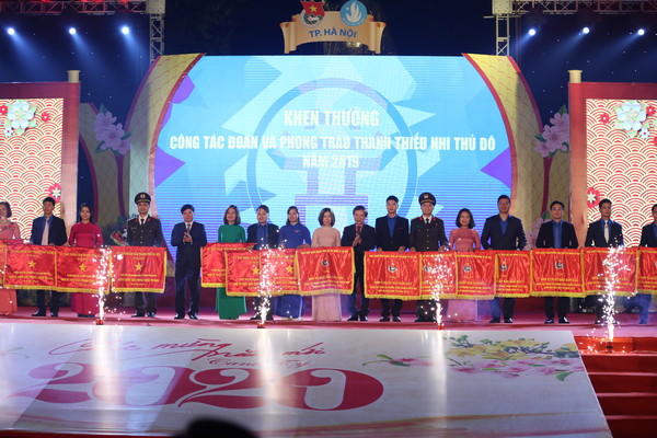 Dịp này, 7 đơn vị vinh dự nhận cờ “Đơn vị xuất sắc phong trào thi đua” của UBND TP Hà Nội năm 2019 và 9 đơn vị nhận cờ “Đơn vị xuất sắc dẫn đầu thi đua công tác Đoàn và phong trào Thanh thiếu nhi Thủ đô” năm 2019