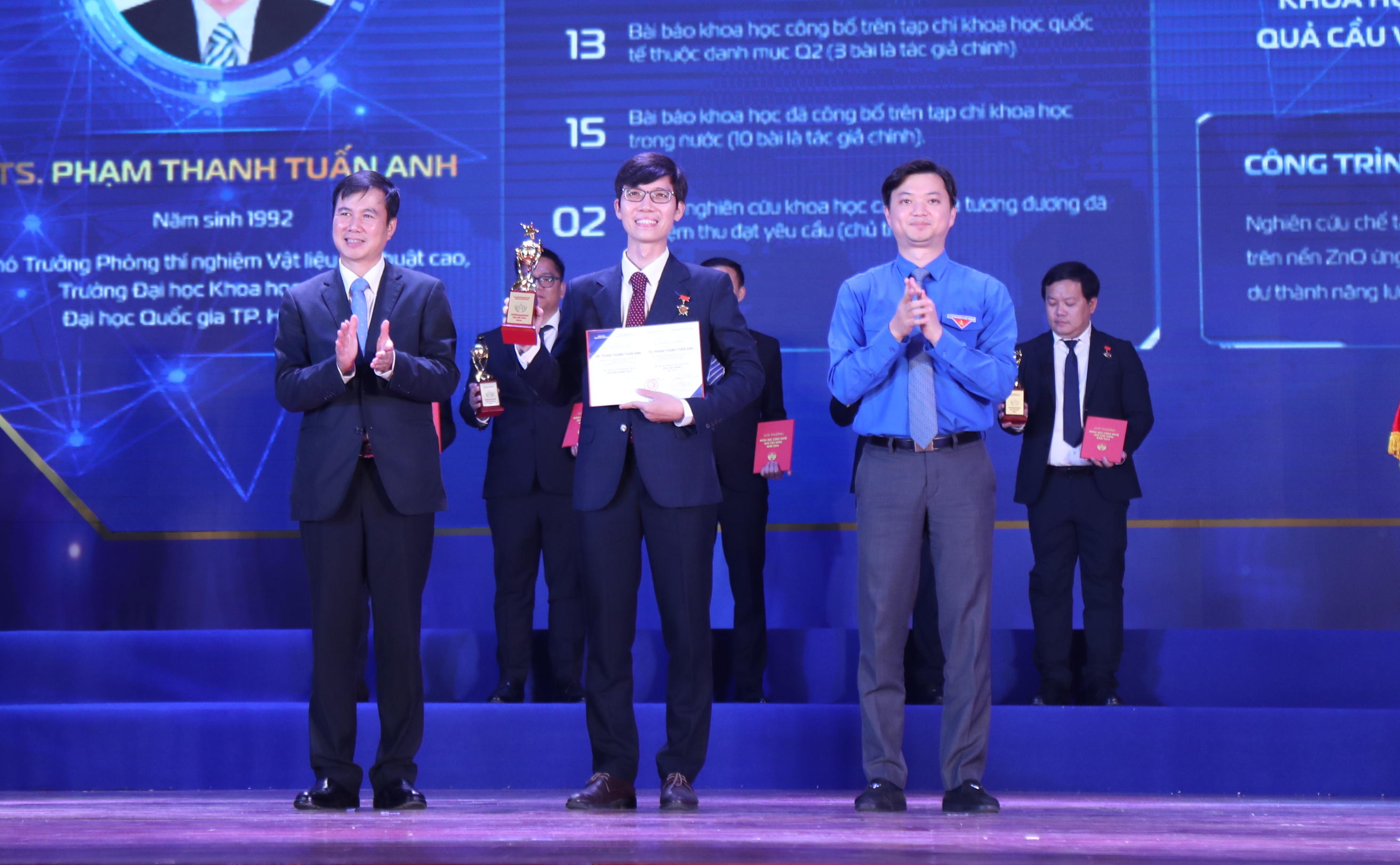 Lĩnh vực Công nghệ Vật liệu mới, ba nhà khoa học được trao giải là: TS Phạm Thanh Tuấn Anh - Phó Trưởng phòng Phòng thí nghiệm Vật liệu Kỹ thuật cao, trường ĐH KHTN, ĐHQG TP. Hồ Chí Minh; TS Nguyễn Viết Hương - Phó Trưởng khoa Khoa học và Kỹ thuật Vật liệu, trường ĐH Phenikaa; TS Trần Ngọc Quang - Nghiên cứu viên tại Trung tâm Nghiên cứu Vật liệu Cấu trúc Nano và Phân tử, ĐHQG TP. Hồ Chí Minh.