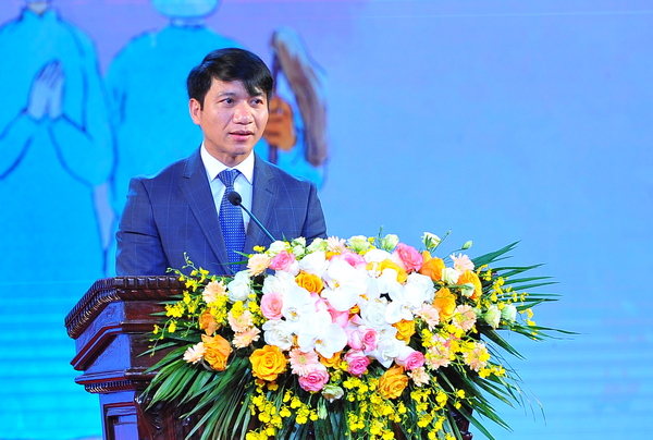 Bí thư TƯ Đoàn, Chủ tịch Hội LHTN Việt Nam Nguyễn Ngọc Lương phát biểu tại buổi lễ