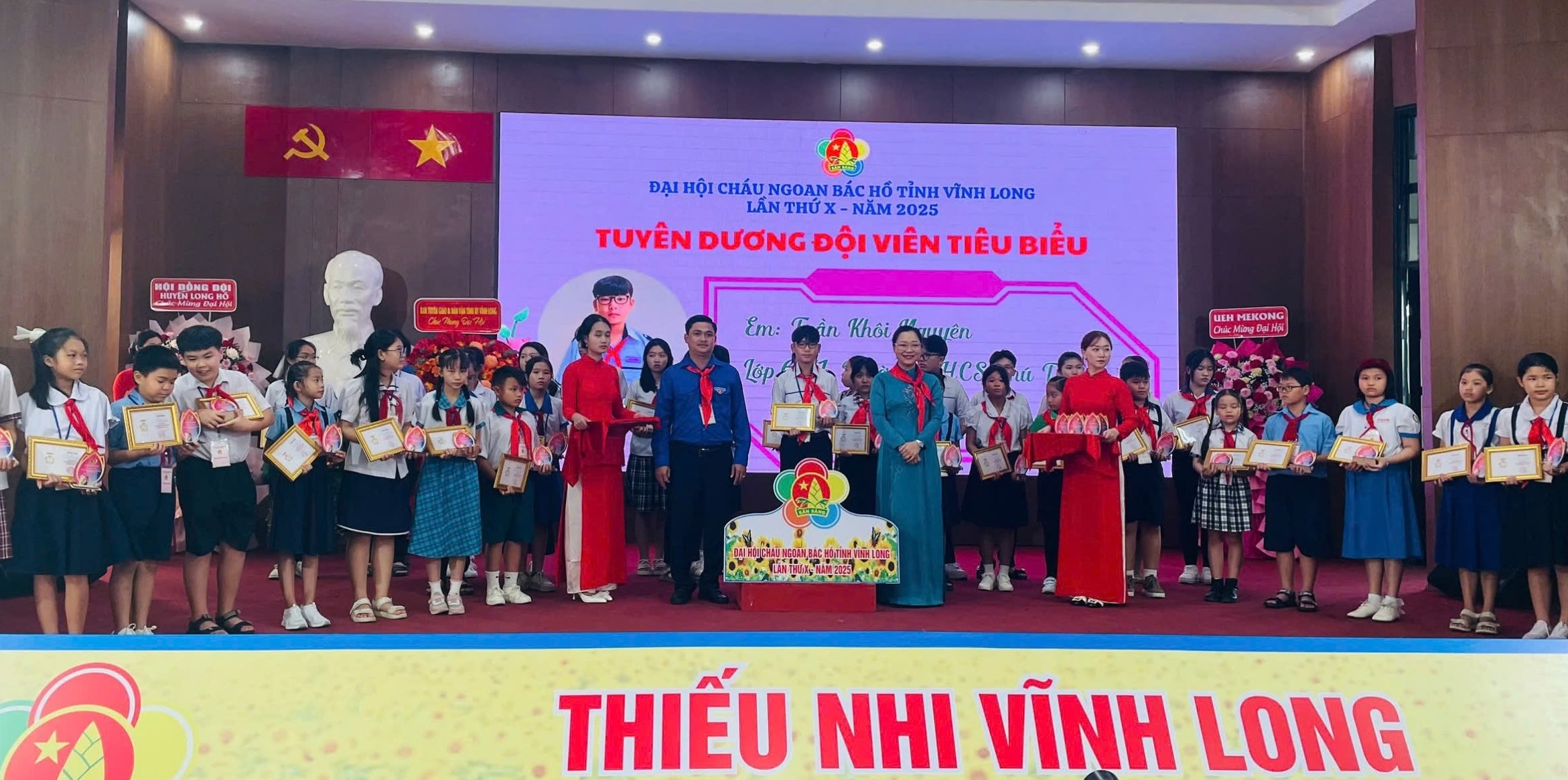 Trong suốt 5 năm qua, hoạt động Đội và phong trào thiếu nhi tỉnh Vĩnh Long đã gặt hái được nhiều thành tựu đáng tự hào. Để có được những thành tích ấy, ngoài sự quan tâm, chỉ đạo sâu sát từ các cấp lãnh đạo, sự dìu dắt tận tâm của các cấp bộ đoàn, Hội đồng Đội, còn có sự nỗ lực không ngừng nghỉ của đội ngũ phụ trách thiếu nhi và đặc biệt là các em đội viên, thiếu niên, nhi đồng trên toàn Tỉnh. Vì vậy, nhân đại hội, Hội đồng Đội tỉnh cũng đã tiến hành tuyên dương, khen thưởng 10 tập thể, 20 cá nhân xuất sắc trong phong trào “Thiếu nhi Việt Nam thi đua làm theo 5 điều Bác Hồ dạy” tỉnh Vĩnh Long giai đoạn 2020 – 2025.