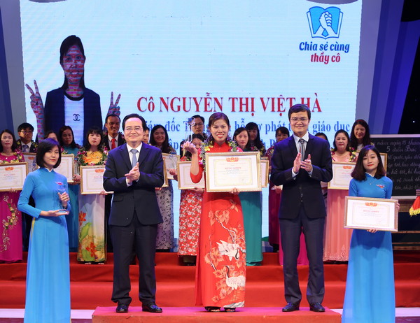 Tại lễ tuyên dương, các thầy, cô giáo đã chia sẻ về quá trình đến với nghề dạy học cho trẻ khuyết tật; những khó khăn, vất vả, những giọt nước mắt và cả những nụ cười trong quá trình chăm sóc, dạy dỗ cho trẻ.