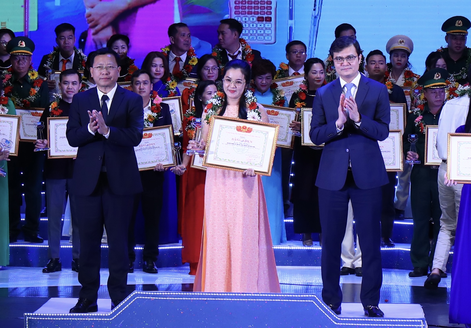 Đồng chí Nguyễn Tường Lâm, Bí thư Trung ương Đoàn, Phó Chủ tịch Trung ương Hội Liên hiệp Thanh niên Việt Nam và Ông Trần Mạnh Hào, Phó tổng Giám đốc Tập đoàn Thiên Long trao Bằng khen và kỷ niệm chương của chương trình dành cho những nỗ lực không ngừng nghỉ của các thầy cô giáo