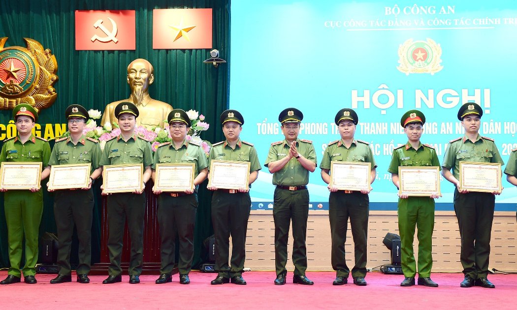 Đồng chí Nguyễn Tường Lâm- Bí thư T.Ư Đoàn, Phó Chủ nhiệm thường trực UBQG về Thanh niên Việt Nam tặng Bằng khen của Trung ương Đoàn cho các tập thể có thành tích xuất sắc trong phong trào "Thanh niên CAND học tập, thực hiện Sáu điều Bác Hồ dạy" giai đoạn 2019 - 2023