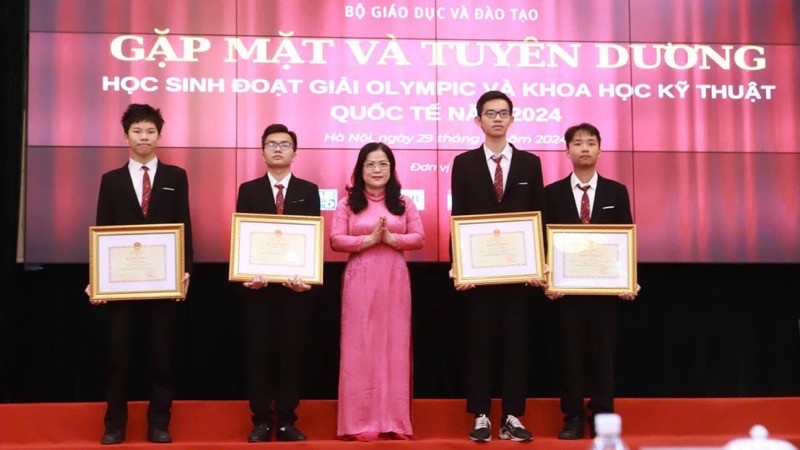 Trước đó, ngày 28/12, Phó Chủ tịch nước Võ Thị Ánh Xuân gặp mặt, tuyên dương đoàn học sinh đoạt giải Olympic và Khoa học kỹ thuật quốc tế năm 2024.