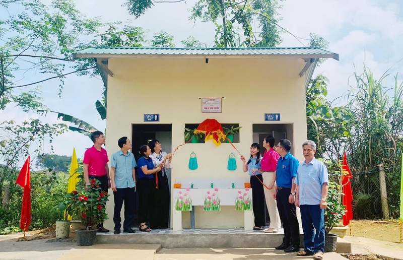 Đại biểu giật băng khánh thành công trình “Nhà vệ sinh cho em” tại huyện Hàm Yên