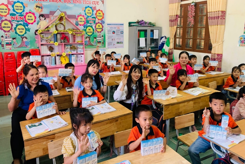 Tại chương trình, 1.980 hộp sữa từ các nhà tài trợ Quỹ Vì tầm vóc Việt, Tập đoàn TH, Ngân hàng TMCP Bắc Á đã trao tặng cho các em học sinh trường Tiểu học Thành Long huyện Hàm Yên.