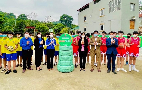 Ngay sau khánh thành, các đoàn viên thanh niên đã trồng cây xanh khu vực khuôn viên sân chơi; tổ chức giao lưu bóng đá; hướng dẫn các em thiếu nhi chơi bóng rổ.
