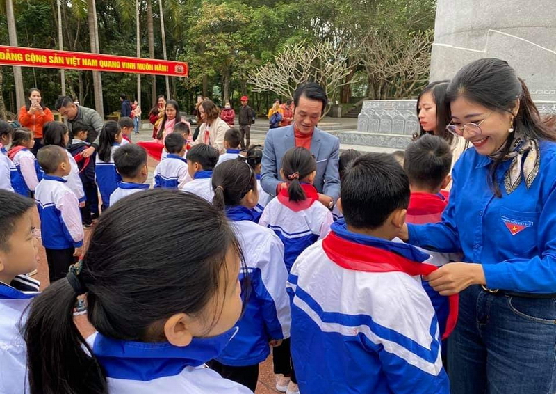 Kết nạp đội viên mới tại tại "Khu di tích lịch sử Quốc gia Nha công an Trung ương" huyện Sơn Dương
