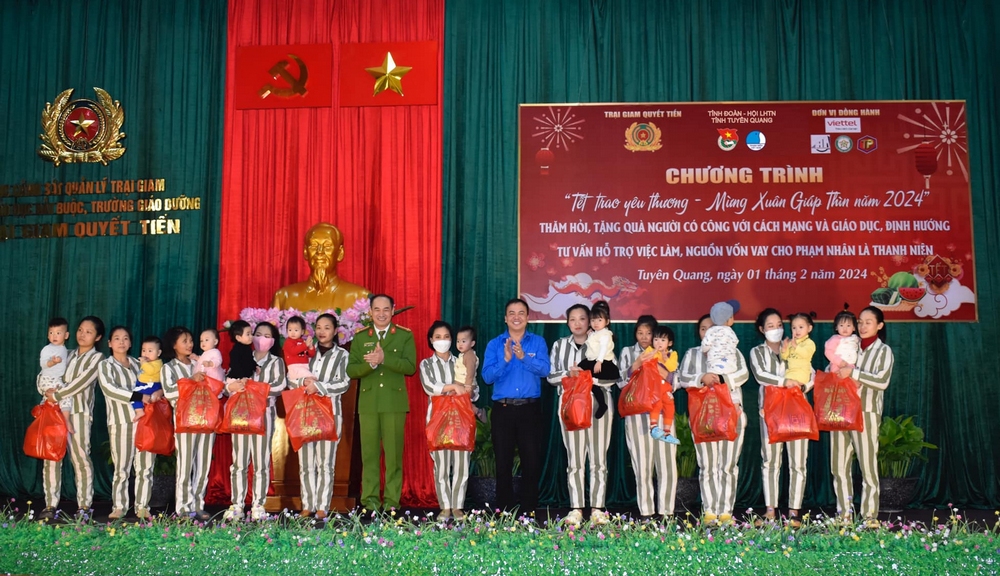 Lãnh đạo Tỉnh đoàn Tuyên Quang, Trại giam Quyết Tiến trao quà Tết cho các phạm nhân nữ là thanh niên đang nuôi con nhỏ