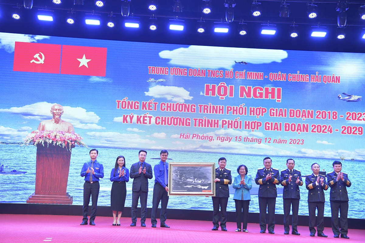 Tại Hội nghị, hai đơn vị ký kết chương trình phối hợp giai đoạn 2023- 2029 với các nội dung quan trọng như: Tiếp tục đẩy mạnh công tác thông tin, tuyên truyền về biển, đảo, về vị trí, vai trò, tầm quan trọng đặc biệt của biển, đảo Việt Nam đối với sự nghiệp xây dựng và bảo vệ Tổ quốc trong thanh thiếu nhi cả nước; Các hoạt động của tuổi trẻ hướng về biển, đảo như phối hợp tham gia phát triển kinh tế, văn hoá - xã hội, xoá đói giảm nghèo khu vực hải đảo; Nâng cao hiệu quả các hoạt động kết nghĩa, chính sách hậu phương quân đội; đồng thời, tổ chức các hoạt động của bộ đội Hải quân đối với tuổi trẻ cả nước…