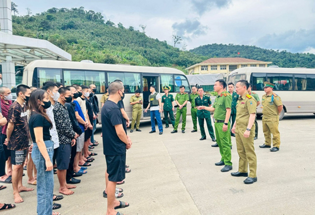 Công an tỉnh Hà Tĩnh phối hợp với các đơn vị chức năng tiếp nhận các nạn nhân người Việt Nam từ Đặc khu kinh tế Bò Kẹo ở Tam giác vàng về nước an toàn.
