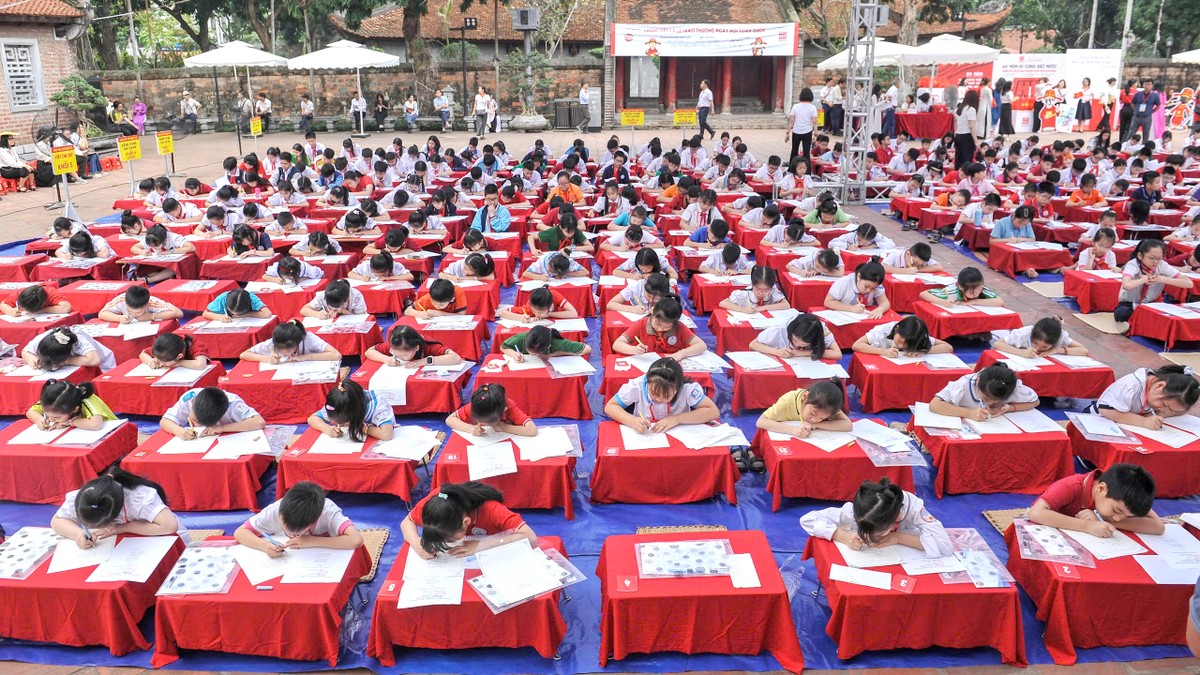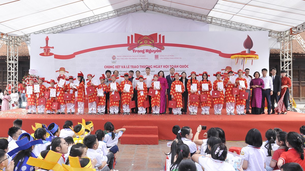 Vòng Chung kết toàn quốc Ngày hội “Trạng nguyên nhỏ tuổi”, Viết chữ đẹp “Nét chữ - Nết người” lần thứ XXIII và Bảng vàng ghi danh lần thứ V, năm học 2024–2025, đã diễn ra sôi nổi tại Di tích Quốc gia đặc biệt Văn Miếu – Quốc Tử Giám (Hà Nội). Đây là hoạt động thường niên, do Báo Thiếu niên Tiền phong và Nhi đồng và Công ty Cổ phần Văn phòng phẩm Hồng Hà phối hợp tổ chức. Ảnh: Ban Tổ chức