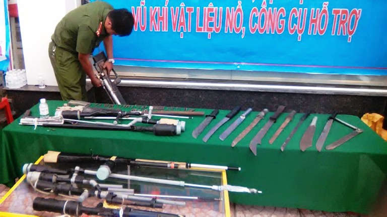 Từ ngày 29/5 đến 26/6/2020, mô hình triển khai tại TP Vĩnh Long, huyện Long Hồ, Mang Thít, Vũng Liêm… được nhiều người dân tích cực hưởng ứng giao nộp vũ khí, vật liệu nổ, công cụ hỗ trợ (VK, VLN, CCHT). Đã có 220 trường hợp đến giao nộp vũ khí, công cụ hỗ trợ, qua đó Công an đã tiếp nhận, thu gom 44 súng các loại, 990 viên đạn các loại, 15 hộp tiếp đạn, 07 quả lựu đạn, 01 quả pháo 105ly; 126 vũ khí thô sơ, dao tự chế; 07 dùi cui điện, 08 dùi cui kim loại, 03 cây đao, 03 cây kiếm, 06 lưỡi lê, 02 bình xịt hơi cay….
