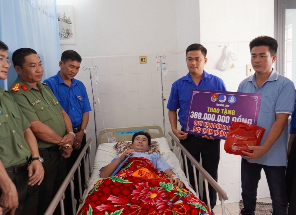 Nhân dịp này, đồng chí Trần Công Khánh cũng đã trao tặng số tiền ủng hộ đợt 1 trị giá 369.000.000 đồng được vận động từ các cấp bộ Đoàn, Hội và cán bộ, đoàn viên, thanh niên trong và ngoài tỉnh đến tận tay Đại úy Trần Hoàng Ngôi.