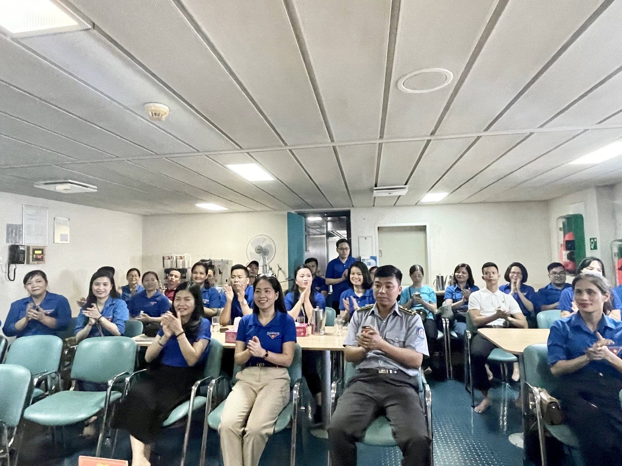 Chia sẻ với những khó khăn, vất vả của các cán bộ, chiến sỹ đang làm nhiệm vụ tại Bộ tư lệnh Vùng 3 Hải quân và tàu KN390, đồng chí Nguyễn Kim Quy – UVBTV Trung ương Đoàn – Bí thư Tỉnh đoàn đã động viên cán bộ chiến sỹ đang làm nhiệm vụ bảo vệ vùng biển của tổ quốc. Đồng chí Bí thư Tỉnh đoàn cho biết, hành trình trái tim xanh VP là một hoạt động có ý nghĩa thiết thực được tổ chức thường xuyên, Hành trình lần này đến với vùng biển, đảo tổ quốc với mong muốn thế hệ trẻ tỉnh Vĩnh Phúc sẽ hiểu thêm được về truyền thống vẻ vang của lịch sử Hải quân Việt Nam anh hùng và hiểu biết thêm những kiến thức về chủ quyền biển đảo.