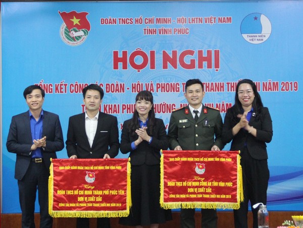 Thường trực tỉnh đoàn trao cờ cho 02 đơn vị thi đua xuất sắc của năm 2019