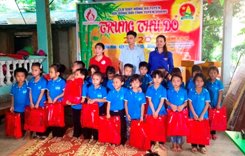 Ngày 30/9, Hội đồng Đội tỉnh Tuyên Quang và Câu lạc bộ Giọt hồng xứ Tuyên tổ chức Chương trình “Trung thu Đỏ 2020” cho các em học sinh tại điểm trường Tiểu học và điểm trường Mầm non Tân Minh, xã Kiến Thiết, huyện Yên Sơn, tỉnh Tuyên Quang.