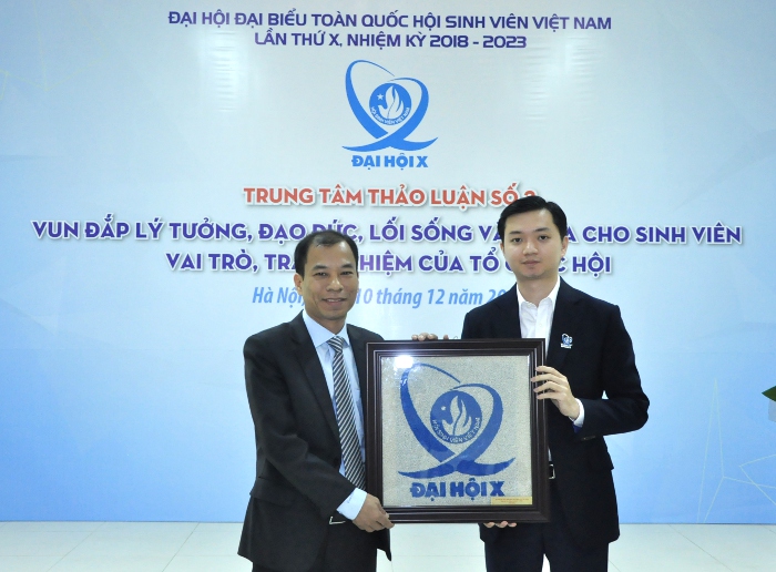 Trao tặng biểu trưng Đại hội tới Ban Giám hiệu trường Đại học Sư phạm Hà Nội