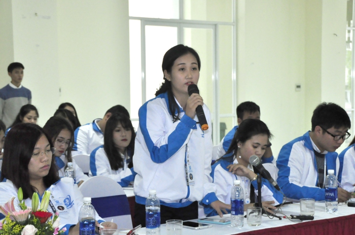 Trần Ngọc Mai đại biểu tỉnh Khánh Hòa cho biết đã tham gia rất nhiều hoạt động trong trường. Theo Mai, các bạn sinh viên tham gia tình nguyện thì rất ít mà chủ yếu là bắt buộc.