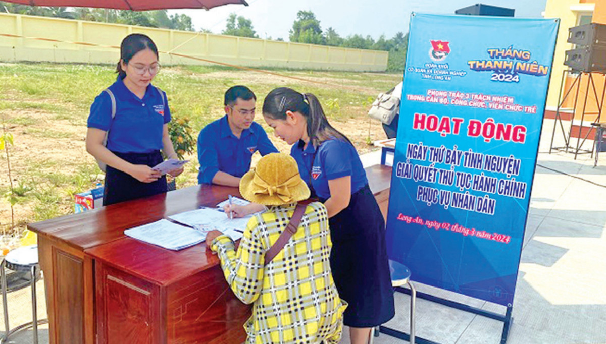 Phát huy vai trò xung kích, sáng tạo của ĐVTN trong cải cách thủ tục hành chính, nâng cao hiệu quả hoạt động của cơ quan, đơn vị trong công tác phục vụ Nhân dân, vừa qua, Ban Thường vụ Đoàn khối chỉ đạo Đoàn cơ sở Văn phòng UBND tỉnh, Chi đoàn cơ sở Sở Tư pháp thành lập đội hình hướng dẫn, tổ chức, tư vấn, giải quyết trực tiếp cho người dân tại xã Thạnh Lợi, huyện Bến Lức.