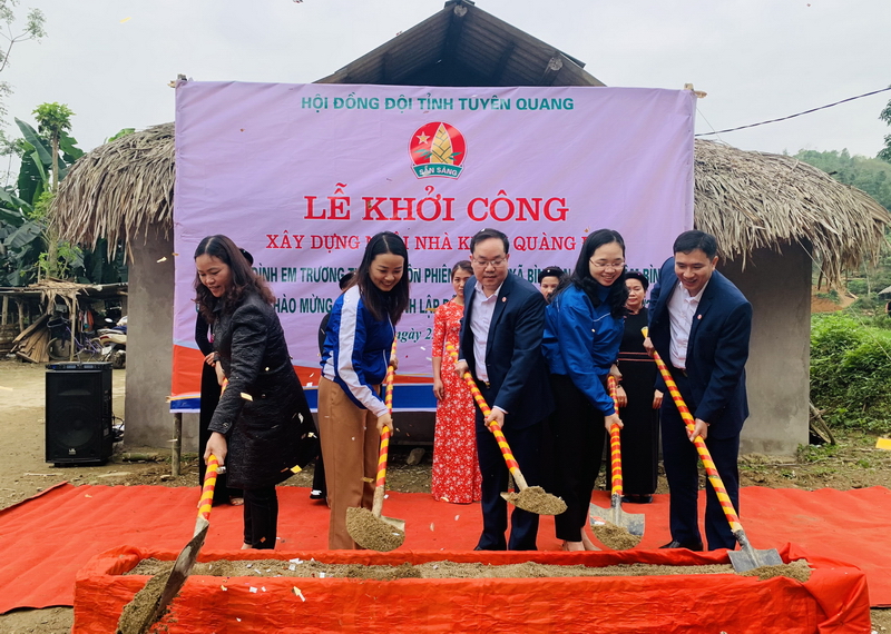 Cũng trong ngày 23/3, Hội đồng Đội tỉnh Tuyên Quang tổ chức khởi công xây dựng “Ngôi nhà khăn quàng đỏ” cho gia đình em Trương Thị Thu, lớp 5A, Liên đội trường Tiểu học Bình An, huyện Lâm Bình, tỉnh Tuyên Quang.