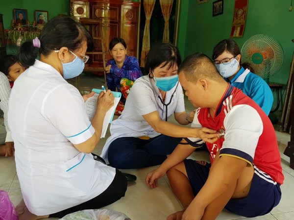 Các Y, Bác sĩ trong Hội Thầy thuốc trẻ tỉnh đến từng hộ gia đình khám bệnh cho người dân.