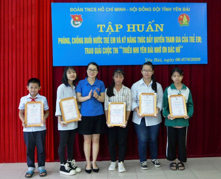 Trao 2 giải Nhất; 4 giải Nhì; 8 giải Ba cho các thí sinh có thành tích xuất sắc tham gia Cuộc thi Thiếu nhi Yên Bái nhớ ơn Bác Hồ và 1 giải Đơn vị có nhiều thí sinh tham gia dự thi nhất cho đơn vị Thành đoàn Yên Bái.