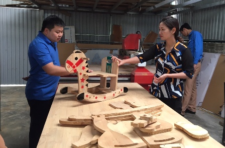 Đồng chí Đoàn Thị Thanh Tâm - Bí thư Tỉnh đoàn thăm mô hình tổ hợp tác sản xuất thủ công mỹ nghệ tại huyện Văn Yên