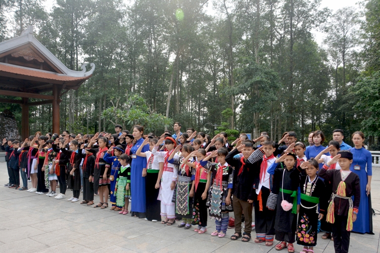 Đoàn thiếu nhi tiêu biểu các dân tộc tỉnh Yên Bái báo công dâng hương tại khu di tích lịch sử K9 Đá Chông