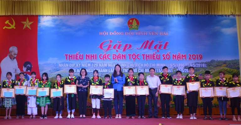 Các thiếu nhi dân tộc thiểu số tiêu biểu đến từ 9 huyện, thị, thành phố và Trung tâm Công tác xã hội và Bảo trợ xã hội tỉnh Yên Bái đã được tặng quà nhân dịp kỷ niệm 78 năm Ngày Thành lập Đội Thiếu niên Tiền phong Hồ Chí Minh (15/5/1941 – 15/5/2019).