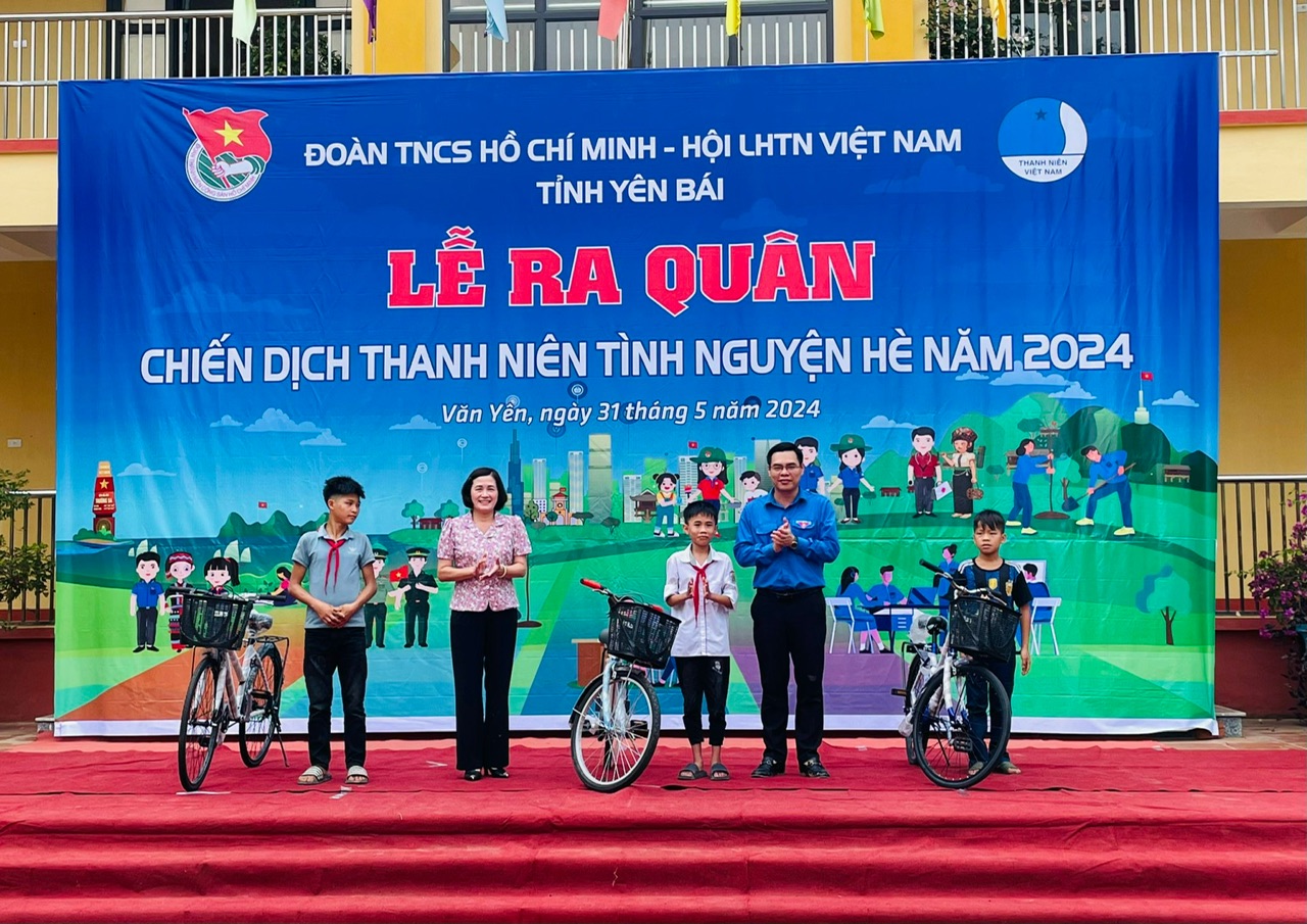 Tại Lễ ra quân, Tỉnh đoàn Yên Bái - Hội Liên hiệp Thanh niên Việt Nam tỉnh đã đồng hành cùng chính quyền địa phương triển khai và hoàn thiện đảm bảo các tiêu chí đạt chuẩn nông thôn mới năm 2024 tại thôn Khe Bành, xã Châu Quế Hạ, huyện Văn Yên. Ban Thường vụ Tỉnh đoàn Yên Bái hỗ trợ xây dựng 1 sân chơi thiếu nhi, 1 công trình thắp sáng sân chơi, xây dựng bể xử lý rác thải tập trung và lắp đặt các thùng rác di động với tổng giá trị trên 30 triệu đồng. Ban tổ chức trao tặng 10 suất học bổng học sinh có hoàn cảnh khó khăn vươn lên trong học tập tại xã Châu Quế Hạ. Tỉnh đoàn đã vận động các đơn vị trao tặng 1.000 đôi giày cho các em học sinh trường PTDTBT TH Châu Quế Hạ và trường PTDTBT THCS Châu Quế Hạ. Ban Thường vụ Tỉnh đoàn trao tặng 3 chiếc xe đạp cho học sinh có hoàn cảnh khó khăn.