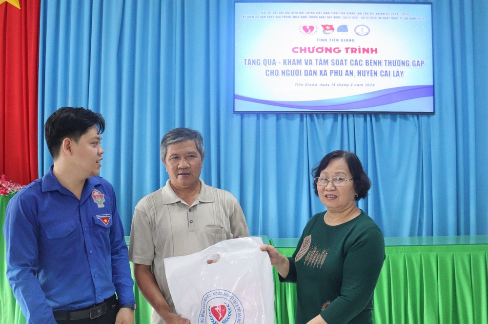 ĐTN: Sáng 14/4, Ban Thường vụ Tỉnh Đoàn - Hội LHTN Việt Nam tỉnh Tiền Giang phối hợp Hội Bảo trợ bệnh nhân nghèo, người khuyết tật và trẻ mồ côi tỉnh Tiền Giang và Bệnh viện Đa khoa trung tâm tỉnh Tiền Giang tổ chức Chương trình tặng quà - khám và tầm soát các bệnh thường gặp cho người dân.