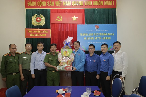 ĐTN: Sáng ngày 25/1, Đoàn công tác do đồng chí Ngô Văn Cương - Bí thư Trung ương Đoàn, Chủ nhiệm Ủy ban Kiểm tra Trung ương Đoàn làm Trưởng đoàn đến thăm và tặng quà cho các cán bộ, chiến sĩ Công an đang công tác tại Công an xã Ia Dom, huyện Ia H’Drai, Kon Tum.