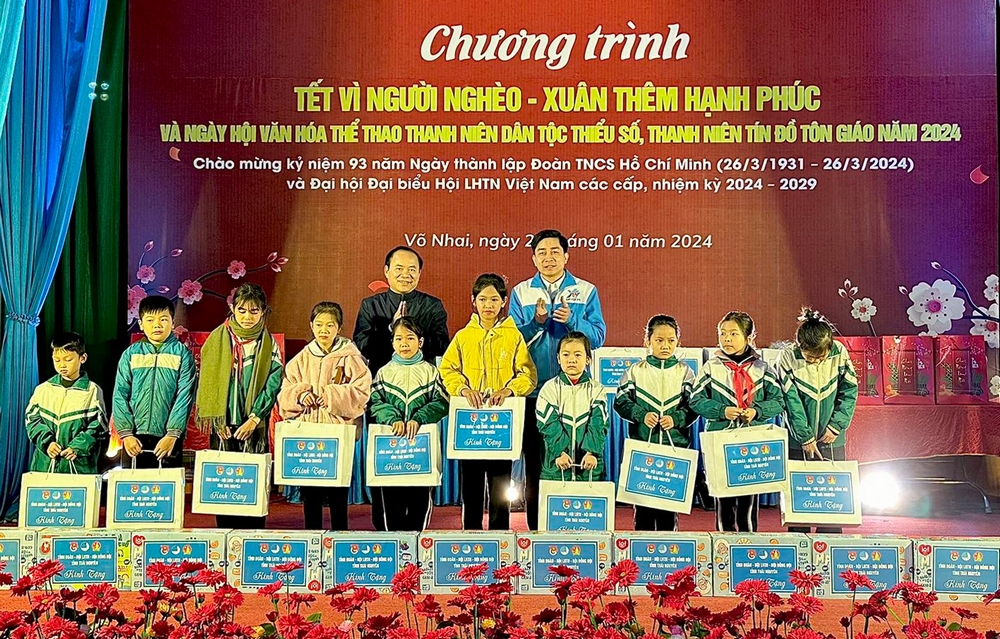 ĐTN: Ngày 22/01, Ban Thường vụ Tỉnh đoàn Thái Nguyên tổ chức chương trình “Tết vì người nghèo - Xuân thêm hạnh phúc" và Ngày hội Văn hóa thể thao thanh niên dân tộc thiểu số, thanh niên tín đồ tôn giáo năm 2024 tại xã Nghinh Tường, huyện Võ Nhai.