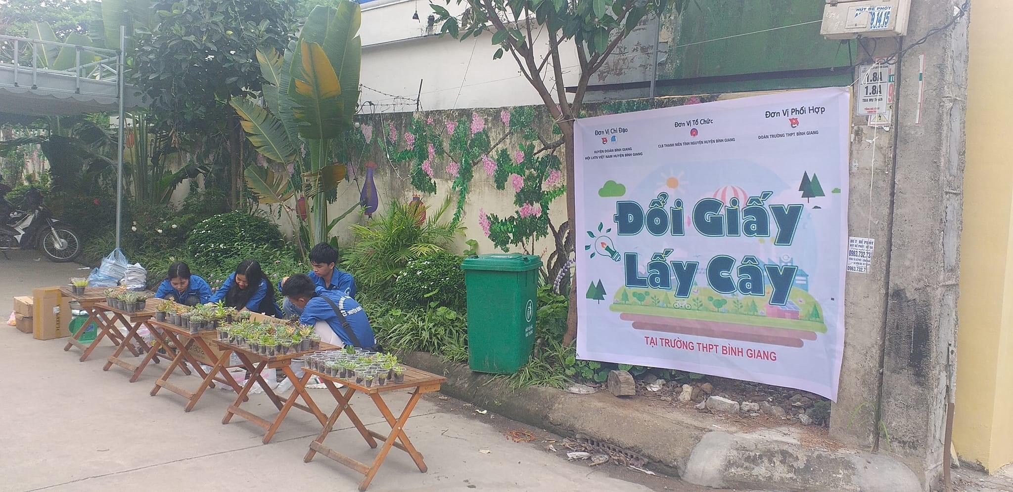 ĐTN: Ngày 21/5, tại trường THPT Bình Giang, huyện Bình Giang, tỉnh Hải Dương, câu lạc bộ thanh niên tình nguyện huyện Bình Giang tổ chức chương trình “Đổi giấy lấy cây”.