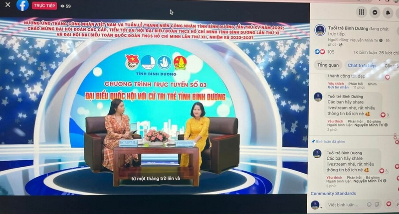 ĐTN: Tối 09/5, Ban Thường vụ Tỉnh Đoàn đã phát trực tiếp Chương trình trực tuyến số 03 - Đại biểu Quốc hội với cử tri trẻ tỉnh Bình Dương trên trang fanpage Tuổi trẻ Bình Dương thu hút gần 2.000 lượt tiếp cận, gần 3.500 lượt tương tác.