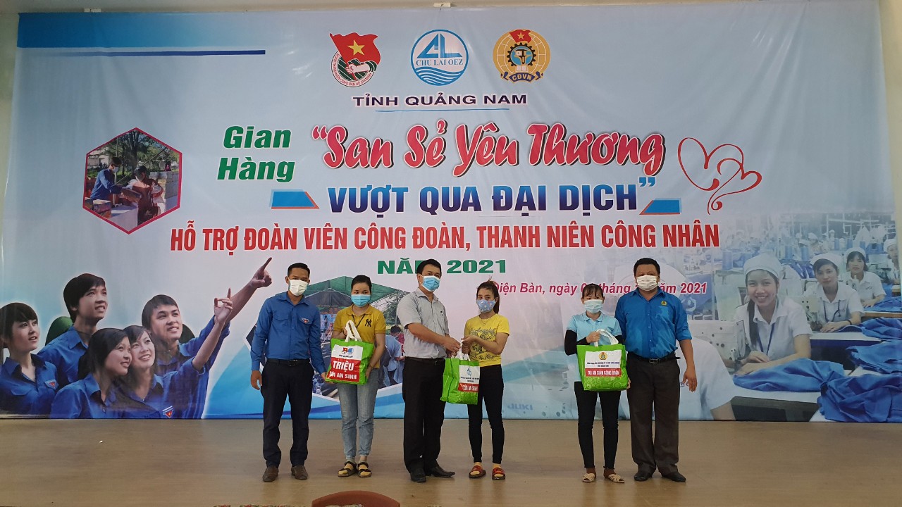 ĐTN: Gian hàng “San sẻ yêu thương, vượt qua đại dịch” vừa được Tỉnh đoàn, Ban quản lý và Công đoàn các khu kinh tế và khu công nghiệp tỉnh phối hợp tổ chức tại Khu công nghiệp Điện Nam - Điện Ngọc (Điện Bàn) đã hỗ trợ, động viên công nhân vượt khó khăn vì ảnh hưởng của dịch Covid-19.