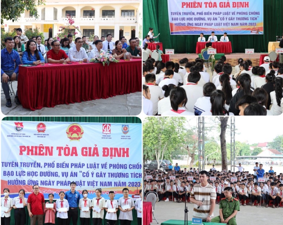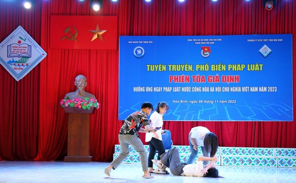 ĐTN: Chiều 08/11, tại Trường PT Dân tộc nội trú THPT tỉnh Hòa Bình, Tỉnh đoàn phối hợp với Viện Nghiên cứu thanh niên Trung ương Đoàn, Thành đoàn Hòa Bình tổ chức hoạt động tuyên truyền, phổ biến pháp luật, “Phiên tòa giả định”, hưởng ứng Ngày Pháp luật nước Cộng hòa xã hội chủ nghĩa Việt Nam năm 2023.