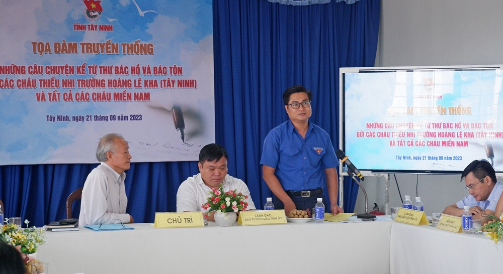 ĐTN: Sáng 21/9, Tỉnh đoàn Tây Ninh đã tổ chức tọa đàm truyền thống với chủ đề "Những câu chuyện kể từ Thư Bác Hồ và Bác Tôn gửi các cháu thiếu nhi Hoàng Lê Kha và tất cả các cháu miền Nam".