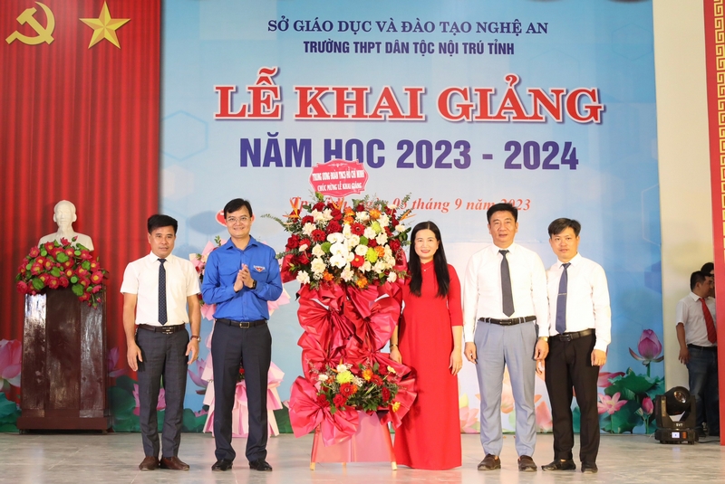 ĐTN: Sáng 5/9, đồng chí Bùi Quang Huy - Ủy viên dự khuyết T.Ư Đảng, Bí thư thứ nhất T.Ư Đoàn đã tham dự Lễ khai giảng năm học mới 2023 -2024 tại trường THPT Dân tộc Nội trú Nghệ An; đồng thời trao tặng 50 suất học bổng cho học sinh nghèo vượt khó học giỏi, 01 mô hình điện năng lượng mặt trời và 10 máy tính cho nhà trường.